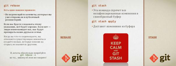 git stash • Эта команда спрячет все незафиксированные изменения в своеобразный буфер git stash apply • Достанет изменения из буфера STASH