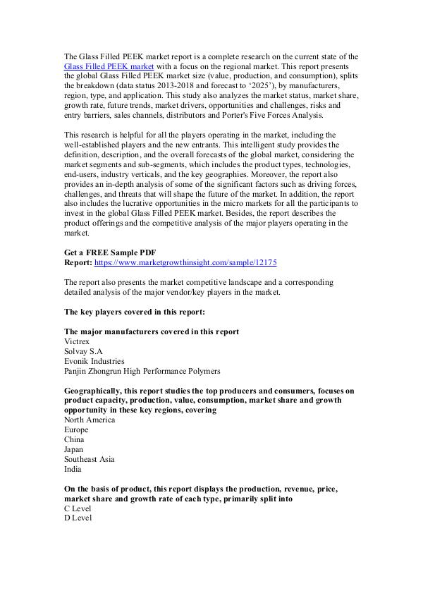 invest in the global Glass Filled PEEK market. Besides, the report describes the