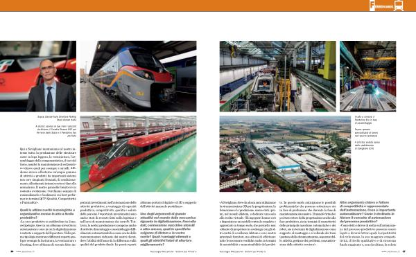 « A Savigliano , dove da alcuni anni utilizziamo la strumentazione 3D per la progettazione , la formazione e la produzione , siamo stati i primi , nel mondo Alstom , a dedicare una sala alla realtà virtuale . Gli ingegneri hanno così a disposizione un modello virtuale completo e aggiornato in tempo reale , che permette non soltanto di progettare in ecodesign con gli altri centri di eccellenza Alstom e con i nostri principali fornitori , ma altresì di effettuare tutte le necessarie verifiche anche in termini di montabilità e manutenibilità del prodotto . In questo modo anticipiamo le possibili problematiche che possono subentrare sia in fase di produzione che durante la fase di manutenzione successiva . Il mondo virtuale è poi stato esteso dalla progettazione anche alla fase produttiva , sia in termini di connettività delle principali macchine automatiche e dei robot , sia in termini di digitalizzazione come supporto al montaggio e al collaudo dei treni ( gestione della documentazione , sequenze delle attività , gestione dei problemi , consuntivazione delle attività eccetera )».