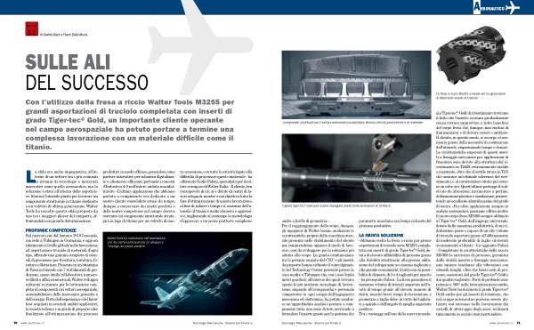 produttivi in modo efficace , ponendosi come partner innovativo per soluzioni digitalizzate e altamente efficienti , portando i concetti d ’ Industria 4.0 nell ’ intero ambito manifatturiero . « L ’ ultima applicazione che abbiamo portato a compimento era dedicata a un nostro cliente consolidato ormai da tempo , dunque a conoscenza dei nostri prodotti e delle nostre competenze sul campo : doveva costruire un componente strutturale strategico in lega di titanio per un velivolo di nuova concezione , con tutte le criticità legate alla difficoltà di processare questo materiale - ha affermato Giulio Paloni , specialista per il settore aerospace di Walter Italia - Il cliente , ben consapevole di ciò , si è dotato di centri di lavoro adeguati , mentre a noi chiedeva tutta la fase d ’ ottimizzazione di questa lavorazione , al fine di ridurre i tempi e il consumo dell ’ u- tensile ( il titanio è molto abrasivo e aggressivo ), migliorando al contempo la metodologia d ’ approccio a un pezzo piuttosto complesso