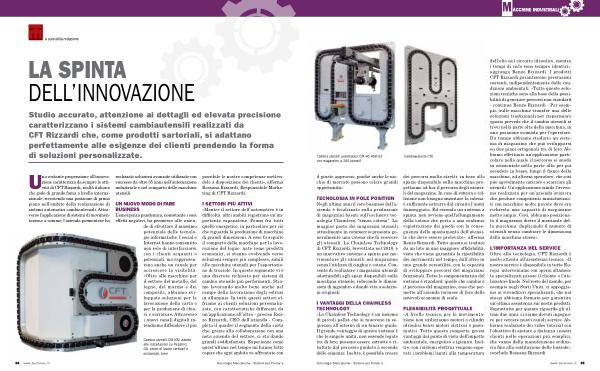 Una costante propensione all ’ innovazione caratterizza da sempre le attività di CFT Rizzardi , realtà italiana che gode di grande fama a livello internazionale , rivestendo una posizione di primo piano nell ’ ambito della realizzazione di sistemi automatici cambiautensili . Attraverso l ’ applicazione di sistemi di movimentazione a camme , l ’ azienda piemontese ha realizzato soluzioni avanzate utilizzate con successo da oltre 35 anni nell ’ automazione industriale e nel comparto delle macchine utensili .