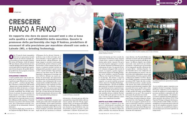 cisioni elevatissime per fare in modo che l ’ operazione di alesatura venga eseguita a regola d ’ arte e assicuri il rispetto di tolleranze molto strette e rigorose . Da qui la necessità di potersi appoggiare a macchine utensili altamente performanti per la realizzazione di teste e in generale di tutte le soluzioni sviluppate dalla società di Lainate . La risposta a questa esigenza è storicamente fornita da Grinding Technology con le rettifiche a marchio Tacchella e Morara , due brand che D ’ Andrea conosce da decenni . « Ho iniziato a conoscere le rettifiche Tacchella negli anni 60 ’, e il rapporto con questo marchio prosegue tutt ’ ora attraverso Grinding Technology – conferma Ermanno – Si tratta di rettifiche apprezzate per la qualità che garantiscono , ma soprattutto per la loro capacità di mantenere la precisione di lavorazione anche dopo anni di servizio . Nella nostra officina sono installate diverse rettifiche Tacchella , alcune delle quali operative da oltre 15 anni , e tutt ’ ora vengono utilizzate a pieno regime e per componenti di qualità ».