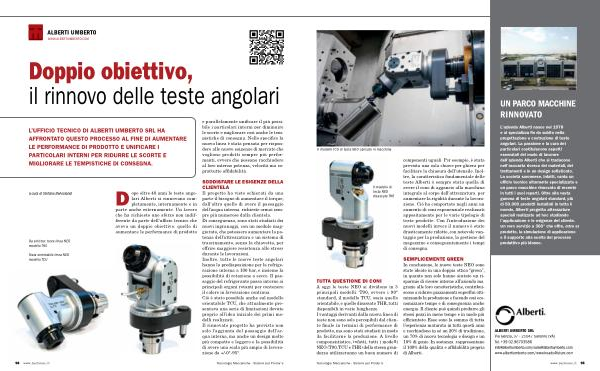 Dopo oltre 40 anni le teste angolari Alberti si rinnovano completamente , internamente e in parte anche esternamente . Un lavoro che ha richiesto uno sforzo non indifferente da parte dell ’ ufficio tecnico che aveva un doppio obiettivo : quello di aumentare le performance di prodotto