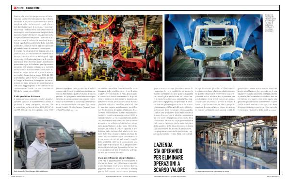 quest ’ ultimo si occupa , prioritariamente , di supportare le varie modifiche sul prodotto definite centralmente per quanto riguarda sia i veicoli già in produzione , sia i nuovi lanci di prodotto . Altrettanto importante è l ’ apporto dell ’ Ingegneria nel processo di innovazione dei processi produttivi in termini di ottimizzazione di Tempi & Metodi e di implementazione delle tecnologie d ’ avanguardia . Le altre aree produttive dello stabilimento di Atessa , che operano in stretta connessione tra loro e con l ’ Ingegneria , sono quelle della Produzione , dedicata alla programmazione e al rispetto dei piani produttivi e dei piani della qualità , e della Manutenzione , dedicata alla funzionalità dei sistemi di produzione . « La programmazione della produzione - aggiunge Accastello - viene fatta centralmente ; qui riceviamo gli ordini e li lanciamo in produzione in base alla domanda di mercato . In questo sito produttivo abbiamo una complessità molto elevata , basti pensare che produciamo circa 1.050 furgoni al giorno , con circa 14.000 versioni diverse di veicolo . È facile comprendere , dunque , che la programmazione diventa un fattore chiave per gestire in maniera ottimale questa complessità . In questa ottica vorrei sottolineare il ruolo del Masterplan Manager che , secondo me , è una figura rivoluzionaria perché , contrariamente al passato , la Casa madre ci chiede di dare un contributo strategico e non solo legato alla gestione operativa dello stabilimento . In altre parole , siamo chiamati a concepire una serie di interventi sui processi e sui fabbricati che favoriscano l ’ aumento della nostra compe-
