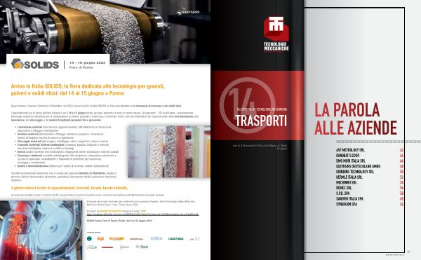 L ’ appuntamento per la prima edizione italiana è per il 14 e 15 giugno presso gli spazi espositivi di Fiere di Parma ( Pad . 8 ). Gli espositori - 150 quelli attesi - presenteranno tecnologie , soluzioni e tendenze per la manipolazione di polveri , granulati e solidi sfusi , ricoprendo l ’ intero ciclo del trattamento dei materiali solidi : dalla movimentazione , alla lavorazione , allo stoccaggio , e all ’ analisi di materiali granulari fini e grossolani :