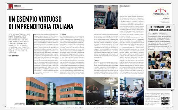 tà di Mechinno , espandendosi successivamente ad altri comparti industriali . Oggi Mechinno , con un fatturato 2022 pari a 8,6 milioni e una crescita del 7 % rispetto all ’ anno scorso , si propone come un importante asset strategico per progetti , in particolare , in ambito automotive - da cui proviene circa il 70 % del proprio fatturato - ma anche nell ’ industrial machinery e off-highway . Inoltre , grazie alla trasversalità delle competenze dei suoi ingegneri e alla versatilità della loro professionalità , la società si sta affacciando su nuovi settori , come quello dell ’ A & D ed Energia , oggi molto promettenti , nei quali il know how che Mechinno ha maturato negli anni potrebbe portare un elevato valore aggiunto .