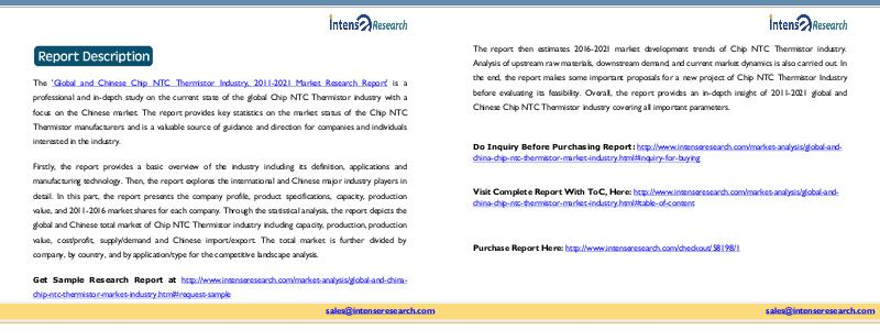 Visit Complete Report With ToC, Here: http://www.intenseresearch.com/market-analysis/global-andchina-chip-ntc-thermistor-market-industry.html#table-of-content