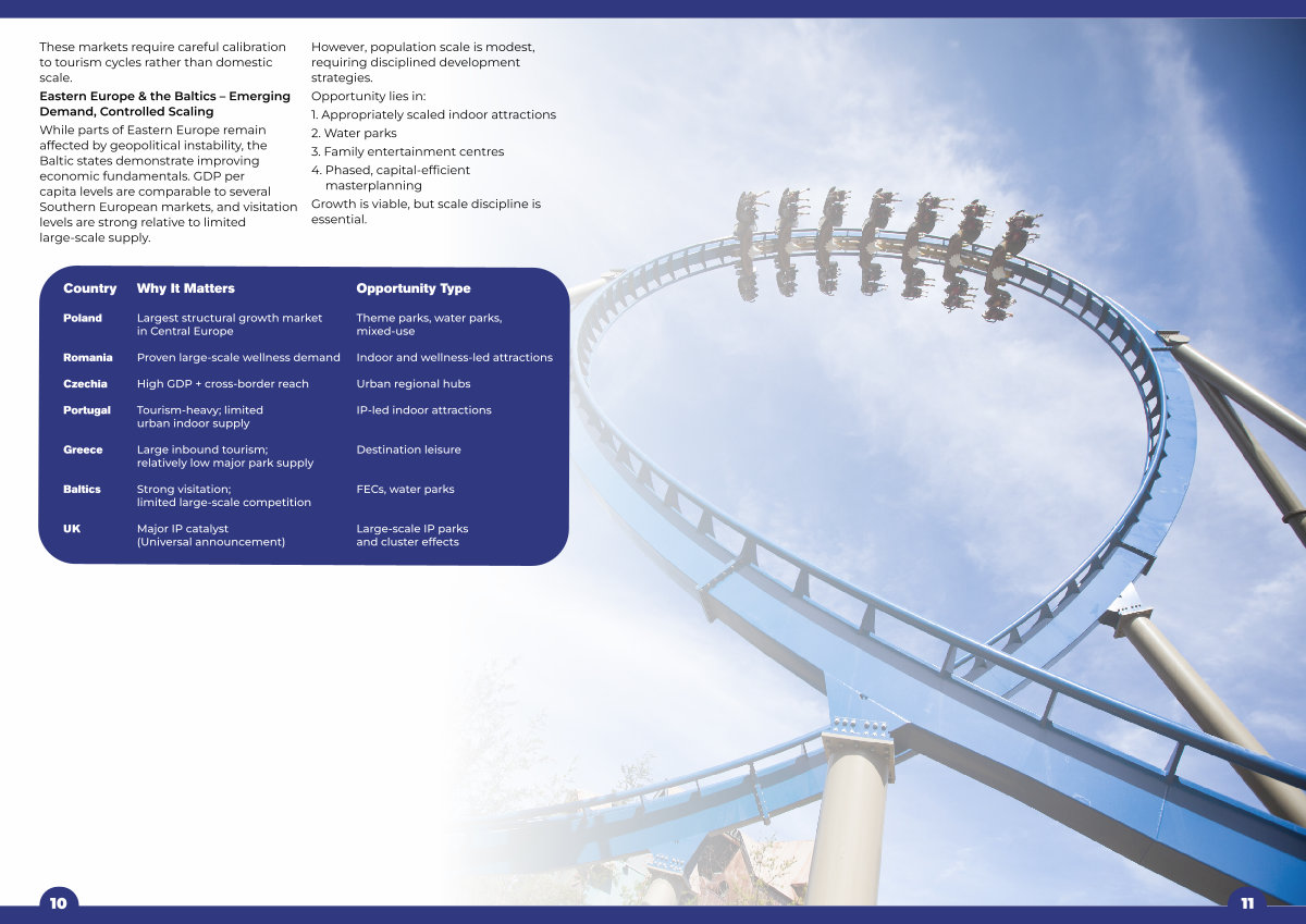 Romania Proven large-scale wellness demand Indoor and wellness-led attractions Czechia High GDP + cross-border reach Urban regional hubs