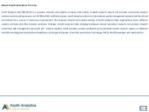 (interviews with management personnel and industry experts). Azoth Analytics provide syndicated and customized market research reports on different