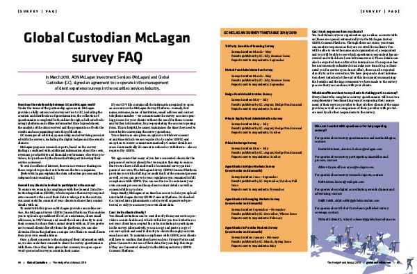 For queries about Global Custodian’ s published survey coverage, contact: