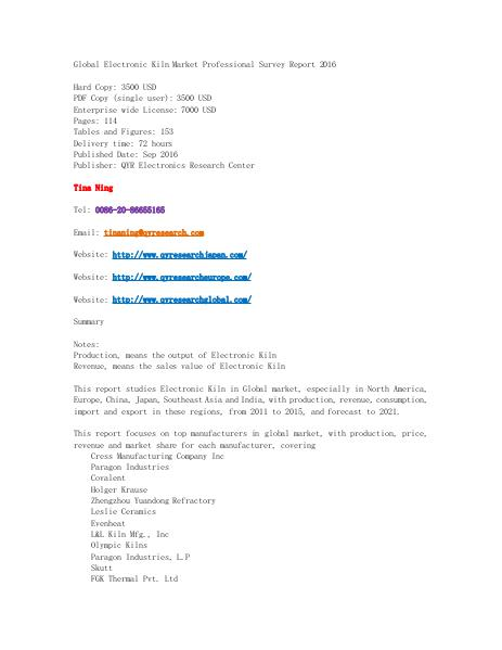 Global Electronic Kiln Market Professional Survey Report 2016