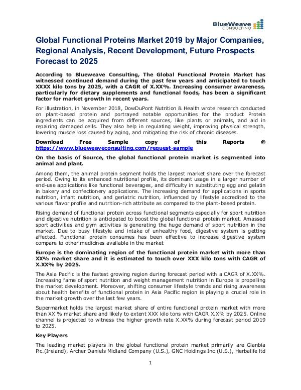 According to Blueweave Consulting, The Global Functional Protein Market has