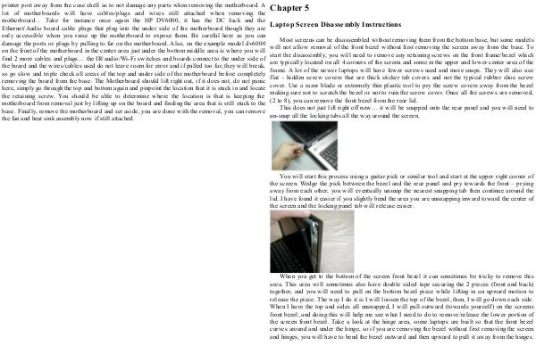 damage the ports or plugs by pulling to far on the motherboard. Also, on the example model dv6000