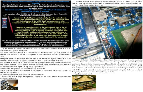 leaked inside the laptops case and into the motherboard area. I have seen liquid spills 2 months old