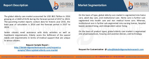 On the basis of type, global elderly care market is segmented into home care, adult day care, and institutional care. Home care is further subsegmented into health care and non medical home care. Whereas, institutional care is further sub-segmented into nursing homes, hospital based, assisted living, and independent senior living.