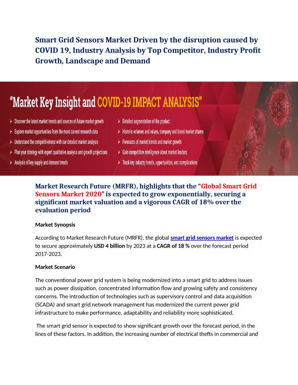 Smart Grid Sensors Market Driven by the disruption caused by COVID 19 , Industry Analysis by Top Competitor , Industry Profit Growth , Landscape and Demand