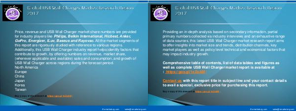 Comprehensive table of contents, list of data tables and figures as well as complete USB Wall Charger market report is available at: https:// goo. gl / 1eZoAM /