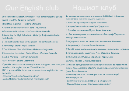Во ова издание од училишното списанието GLOBE (Свет) ќе бидете во