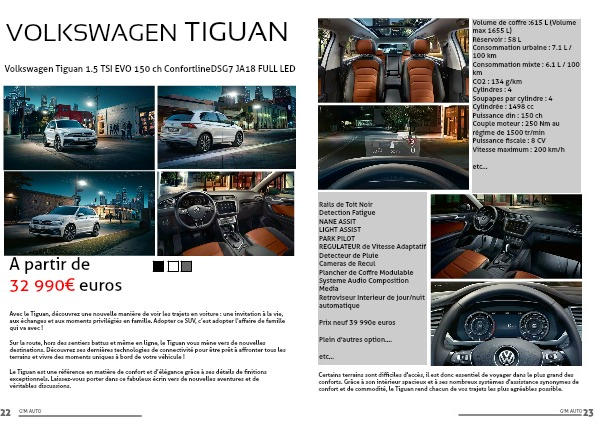 Le Tiguan est une référence en matière de confort et d’élégance grâce à ses détails de finitions exceptionnels. Laissez-vous porter dans ce fabuleux écrin vers de nouvelles aventures et de véritables discussions.
