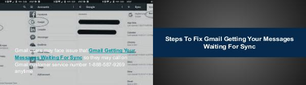 Gmail users may face issue that Gmail Getting Your Messages Waiting For Sync so they may call on Gmail customer service number 1-888-587-9269 anytime
