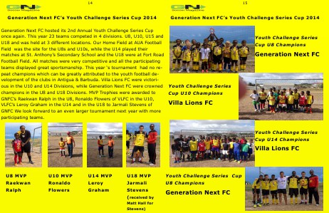 teams displayed great sportsmanship. This year ‘s tournament had no repeat champions which can be greatly attributed to the youth football development of the clubs in Antigua & Barbuda. Villa Lions FC were victorious in the U10 and U14 Divisions, while Generation Next FC were crowned