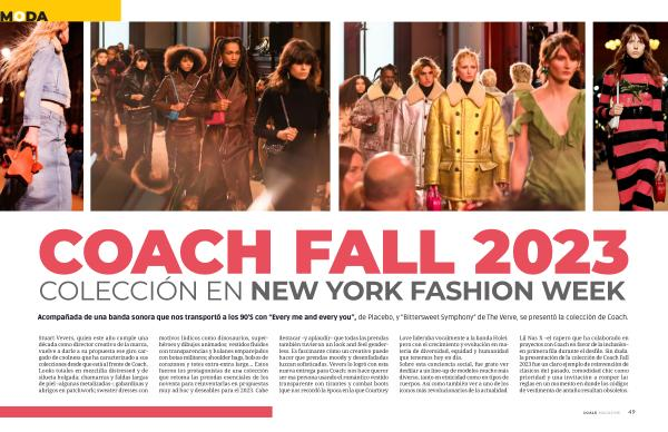 Stuart Vevers , quien este año cumple una década como director creativo de la marca , vuelve a darle a su propuesta ese giro cargado de coolness que ha caracterizado a sus colecciones desde que está al frente de Coach . Looks totales en mezclilla distressed y de silueta holgada ; chamarras y faldas largas de piel – algunas metalizadas –; gabardinas y abrigos en patchwork ; sweater dresses con motivos lúdicos como dinosaurios , superhéroes y dibujos animados ; vestidos fluidos con transparencias y holanes emparejados con botas militares ; shoulder bags , bolsos de corazones y totes extra-extra large … Estos fueron los protagonistas de una colección que retoma las prendas esenciales de los noventa para reinventarlas en propuestas muy ad hoc y deseables para el 2023 . Cabe destacar – y aplaudir – también tuvieron un l less . Es fascinante cóm hacer que prendas m luzcan sofisticadas . Ve nueva entrega para Co ser esa persona usando transparente con tira ( que nos recordó la épo