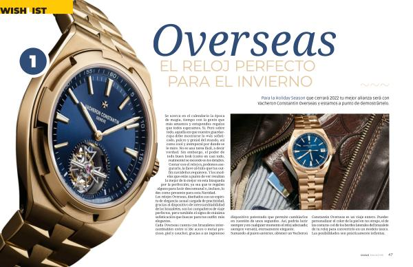 Se acerca en el calendari de magia , tiempo con la más amamos y estupend que todos esperamos . Sí . todo , aquella en que nuest ropa debe mostrarse lo m cado , pulcro y genial del como cool y atemporal po le mire . No es una tarea fá verdad . Sin embargo , e todo buen look ( como en realmente ) se esconde en Contar con el reloj es , po gurarlo , la llave al éxito q fits navideños requieren elos que estás a punto de v lo mejor de lo mejor en esta por la perfección ; ya sea que alguno para lucir descomunal o des como presente para esta Nav Los relojes Overseas , diseñados co tu de elegancia casual cargada de p gracias al dispositivo de intercam de los brazaletes , son los compañe perfectos , pero también el signo sofisticación que buscas para tus elegantes . Cada Overseas cuenta con braza cambiables entre sí ( de acero o cioso , piel y caucho ), gracias a un