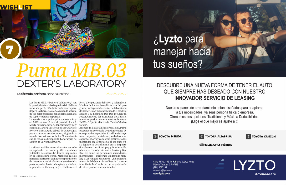 La silueta exhibe tonos vibrantes en todo su esplendor, así como gráficos audaces y detalles de colores brillantes inspirados en el icónico niño genio. Mientras que los patrones abstractos compuestos por diseños de remolinos multicolores se ven desde la parte superior hasta la lengüeta y el talón, segmentos en blanco y negro resaltan en el forro y los patrones del talón y la lengüeta. Muchos de los motivos distintivos del programa, incluyendo los lentes de laboratorio de Dexter, están presentes en todo el modelo. Dexter y su hermana Dee Dee reciben un reconocimiento en el interior del zapato, mientras que los talones muestran la marca“ M. E. L. O.” junto al texto de“ Dexter’ s Laboratory”. Además de la paleta de colores MB. 03, Puma presenta una colección de indumentaria de once prendas especiales. Esta línea incluye una chaqueta, pantalones, sudadera con capucha, shorts y camisetas gráficas, todas inspiradas en la nostalgia de los años 90. Su legado se ve reflejado en su impacto duradero en la cultura pop y la animación televisiva. La relación entre Dexter y Dee Dee, así como los personajes secundarios memorables— queremos un drop de Monkey o Los Amigos Justicieros—, dejaron una marca indeleble en la audiencia. La serie también influyó en la narrativa y el diseño de otras producciones animadas.