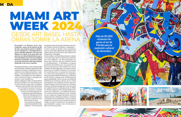 Hay ferias históricas , como la pionera del sur de Florida , Art Miami , que desde 1990 impulsa la movida ; o dedicadas exclusivamente al arte latinoamericano , como Pinta , y al de la diáspora africana , como AfriKin ; o centradas en el arte callejero , como Wynwood Walls ; o dirigida por artistas , como Satellite Art . Desde su llegada en 2002 , Art Basel Miami Beach ha atraído a los coleccionistas en sus días VIP para luego abrir al público durante tres jornadas . Este año los días por invitación exclusiva fueron el miércoles 4 y el jueves 5 , y desde el viernes 6 al domingo 8 las entradas generales permitieron visitar las 286 galerías de 38 países que se reúnieron en una de las ediciones más diversas de la feria . Con una fuerte representación de expositores de las Américas — dos tercios de las galerías provienen del continente , de Estados Unidos a Brasil , de México a Argentina —, la feria nacida en Basilea suma 34 galerías nuevas , entre ellas algunas de renombre como Gallery Baton de Seúl y Pearl Lam Galleries de Hong Kong y Shanghái . Como siempre , Art Basel Miami Beach se divide en sectores que ofrecen experiencias distintivas , como Galleries — el sector principal , con obras que abarcan del arte moderno hasta el contemporáneo — y Meridians , el espacio preferido del público por sus proyectos de gran escala que este año tendrá una nueva curadora : Yasmil Raymond . Con temas como la democracia , el cambio climático y el concepto de transformación , se presentan 18 proyectos , entre ellos Amazogramas , un fotograma monumental de Roberto Huarcaya , y Pathway de Zhu Jinshi , compuesto de 16.000 hojas de papel suspendidas . Otros sectores son Kabinett ( exhibiciones temáticas dentro de los stands principales ), Nova ( galerías jóvenes que presentan trabajos nuevos de hasta tres artistas ), Positions ( artistas emergentes ) y Survey ( obra de calidad histórica realizada antes de 2000 ). La edición número 20 de Design Miami tuvo como tema “ Blue Sky ”, con impulso del director curatorial Glenn Adamson . Este concepto invita a repensar el papel del diseño como un espacio para las soluciones audaces y creativas en tiempos de incertidumbre , como un medio resiliente y esencial en la creación de futuros viables , útil para transformar los desafíos en oportunidades , romper con convenciones y abrir nuevos horizontes .