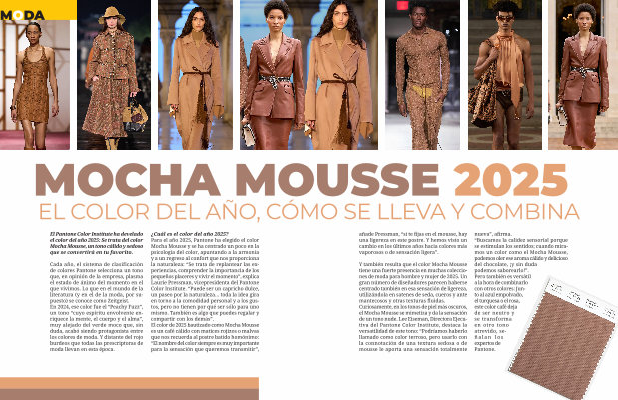 ¿ Cuál es el color del año 2025 ? Para el año 2025 , Pantone ha elegido el color Mocha Mousse y se ha centrado un poco en la psicología del color , apuntando a la armonía y a un regreso al confort que nos proporciona la naturaleza : “ Se trata de replantear las experiencias , comprender la importancia de los pequeños placeres y vivir el momento ”, explica Laurie Pressman , vicepresidenta del Pantone Color Institute . “ Puede ser un capricho dulce , un paseo por la naturaleza ... toda la idea gira en torno a la comodidad personal y a los gustos , pero no tienen por qué ser sólo para uno mismo . También es algo que puedes regalar y compartir con los demás ”. El color de 2025 bautizado como Mocha Mousse es un café cálido con matices rojizos o malvas que nos recuerda al postre batido homónimo : “ El nombre del color siempre es muy importante para la sensación que queremos transmitir ”,