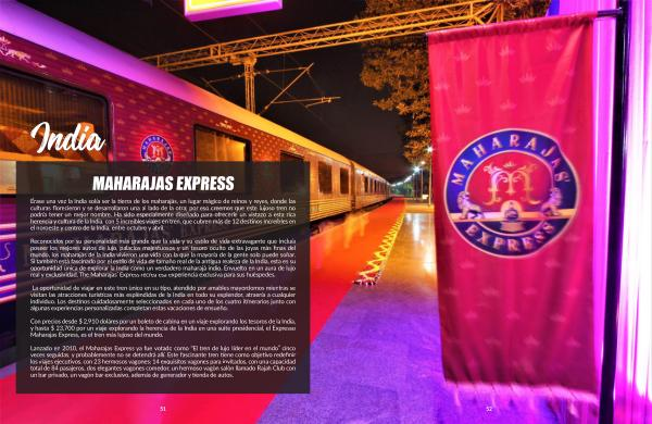 Lanzado en 2010 , el Maharajas Express ya fue votado como “ El tren de lujo líder en el mundo ” cinco veces seguidas , y probablemente no se detendrá allí . Este fascinante tren tiene como objetivo redefinir los viajes ejecutivos , con 23 hermosos vagones : 14 exquisitos vagones para invitados , con una capacidad total de 84 pasajeros , dos elegantes vagones comedor , un hermoso vagón salón llamado Rajah Club con un bar privado , un vagón bar exclusivo , además de generador y tienda de autos .