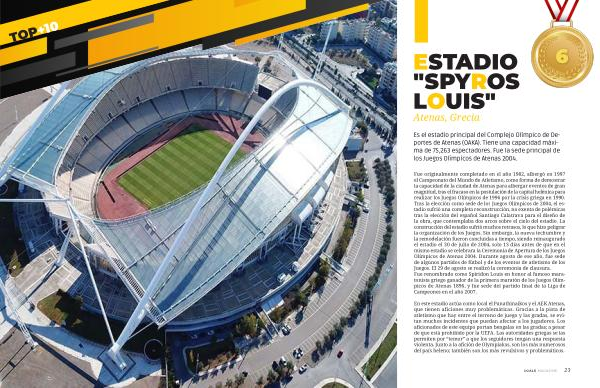 Fue originalmente completado en el año 1982 , albergó en 1997 el Campeonato del Mundo de Atletismo , como forma de demostrar la capacidad de la ciudad de Atenas para albergar eventos de gran magnitud , tras el fracaso en la postulación de la capital helénica para realizar los Juegos Olímpicos de 1996 por la crisis griega en 1990 . Tras la elección como sede de los Juegos Olímpicos de 2004 , el estadio sufrió una completa reconstrucción , no exenta de polémicas tras la elección del español Santiago Calatrava para el diseño de la obra , que contemplaba dos arcos sobre el cielo del estadio . La construcción del estadio sufrió muchos retrasos , lo que hizo peligrar la organización de los Juegos . Sin embargo , la nueva techumbre y la remodelación fueron concluidas a tiempo , siendo reinaugurado el estadio el 30 de julio de 2004 , solo 13 días antes de que en el mismo estadio se celebrara la Ceremonia de Apertura de los Juegos Olímpicos de Atenas 2004 . Durante agosto de ese año , fue sede de algunos partidos de fútbol y de los eventos de atletismo de los Juegos . El 29 de agosto se realizó la ceremonia de clausura . Fue renombrado como Spiridon Louis en honor al famoso maratonista griego ganador de la primera maratón de los Juegos Olímpicos de Atenas 1896 , y fue sede del partido final de la Liga de Campeones en el año 2007 .