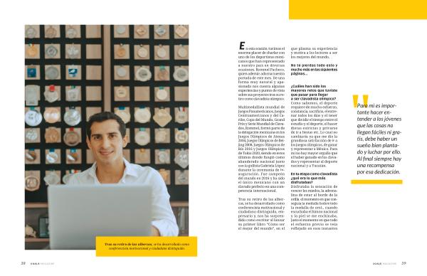 E n esta ocasión , tuvimos el enorme placer de charlar con uno de los deportistas mexicanos que han representado a nuestro país en diversas ocasiones , Rommel Pacheco , quien además adorna nuestra portada de este mes . De una forma muy natural y apasionada nos cuenta algunas experiencias y puntos de vista sobre sus proyectos tras su retiro como clavadista olímpico .