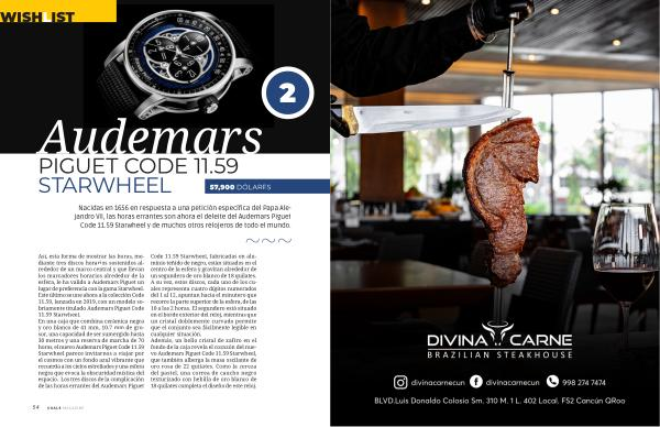 Así , esta forma de mostrar las horas , mediante tres discos horarios sostenidos alrededor de un marco central y que llevan los marcadores horarios alrededor de la esfera , le ha valido a Audemars Piguet un lugar de preferencia con la gama Starwheel . Este último se une ahora a la colección Code 11.59 , lanzada en 2019 , con un modelo sobriamente titulado Audemars Piguet Code 11.59 Starwheel . En una caja que combina cerámica negra y oro blanco de 41 mm , 10.7 mm de grosor , una capacidad de ser sumergido hasta 30 metros y una reserva de marcha de 70 horas , el nuevo Audemars Piguet Code 11.59 Starwheel parece invitarnos a viajar por el cosmos con un fondo azul vibrante que recuerda a los cielos estrellados y una esfera negra que evoca la obscuridad mística del espacio . Los tres discos de la complicación de las horas errantes del Audemars Piguet