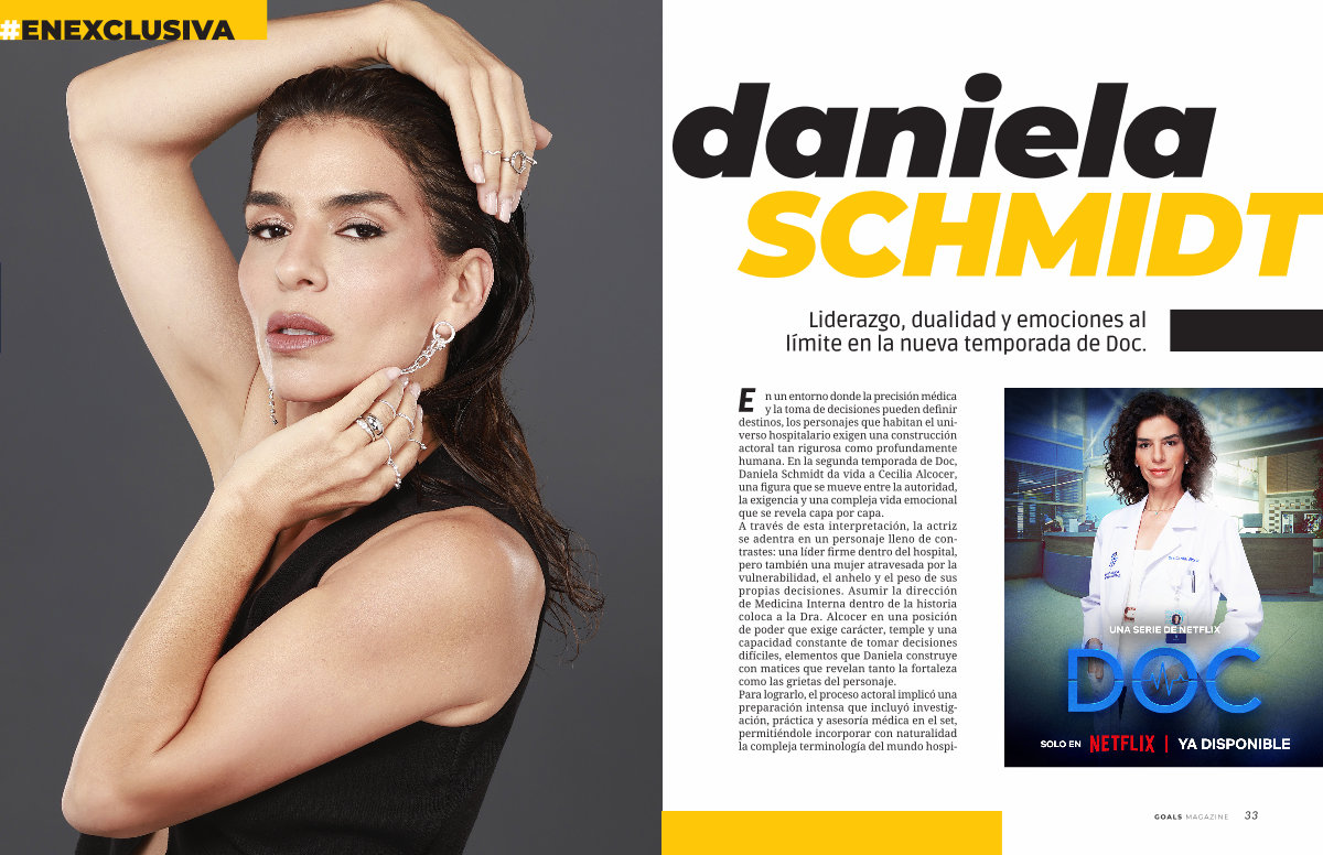 n un entorno donde la precisión médica y la toma de decisiones pueden definir destinos, los personajes que habitan el universo hospitalario exigen una construcción actoral tan rigurosa como profundamente humana. En la segunda temporada de Doc, Daniela Schmidt da vida a Cecilia Alcocer, una figura que se mueve entre la autoridad, la exigencia y una compleja vida emocional que se revela capa por capa. A través de esta interpretación, la actriz se adentra en un personaje lleno de contrastes: una líder firme dentro del hospital, pero también una mujer atravesada por la vulnerabilidad, el anhelo y el peso de sus propias decisiones. Asumir la dirección de Medicina Interna dentro de la historia coloca a la Dra. Alcocer en una posición de poder que exige carácter, temple y una capacidad constante de tomar decisiones difíciles, elementos que Daniela construye con matices que revelan tanto la fortaleza como las grietas del personaje. Para lograrlo, el proceso actoral implicó una preparación intensa que incluyó investigación, práctica y asesoría médica en el set, permitiéndole incorporar con naturalidad la compleja terminología del mundo hospi-