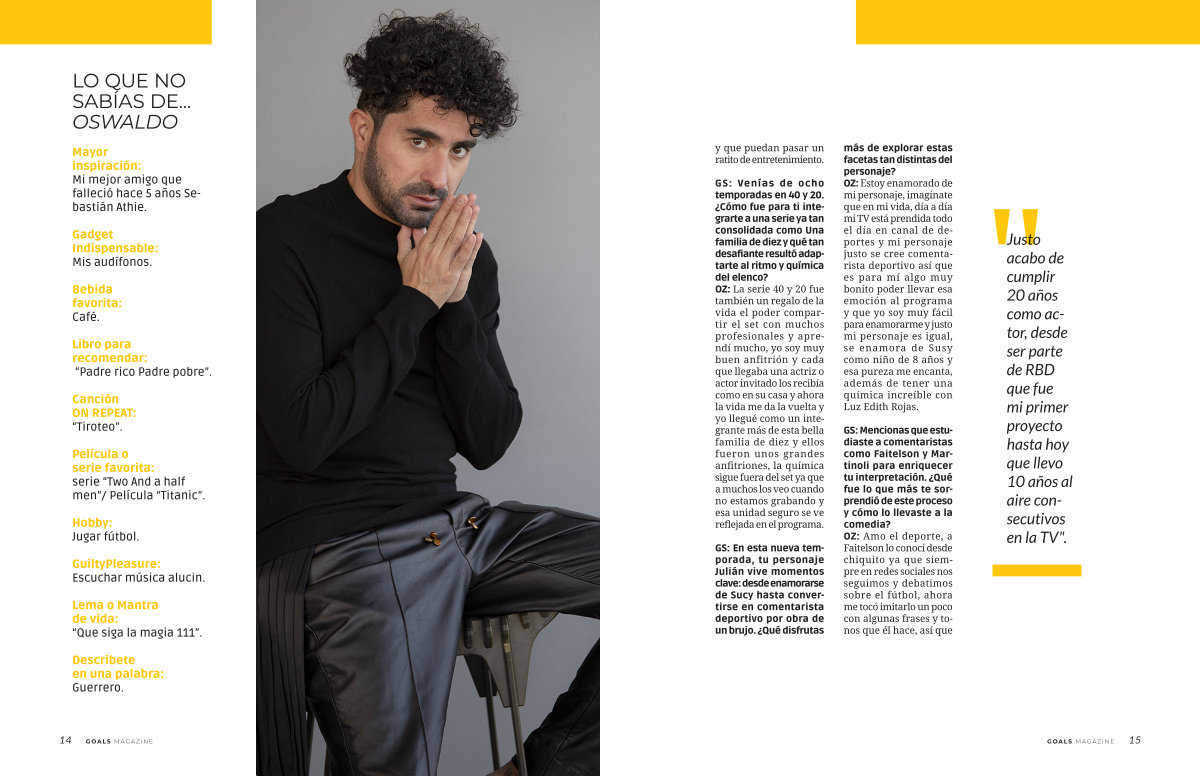 GS: En esta nueva temporada, tu personaje Julián vive momentos clave: desde enamorarse de Sucy hasta convertirse en comentarista deportivo por obra de un brujo. ¿ Qué disfrutas más de explorar estas facetas tan distintas del personaje? OZ: Estoy enamorado de mi personaje, imagínate que en mi vida, día a día mi TV está prendida todo el día en canal de deportes y mi personaje justo se cree comentarista deportivo así que es para mí algo muy bonito poder llevar esa emoción al programa y que yo soy muy fácil para enamorarme y justo mi personaje es igual, se enamora de Susy como niño de 8 años y esa pureza me encanta, además de tener una química increíble con Luz Edith Rojas.