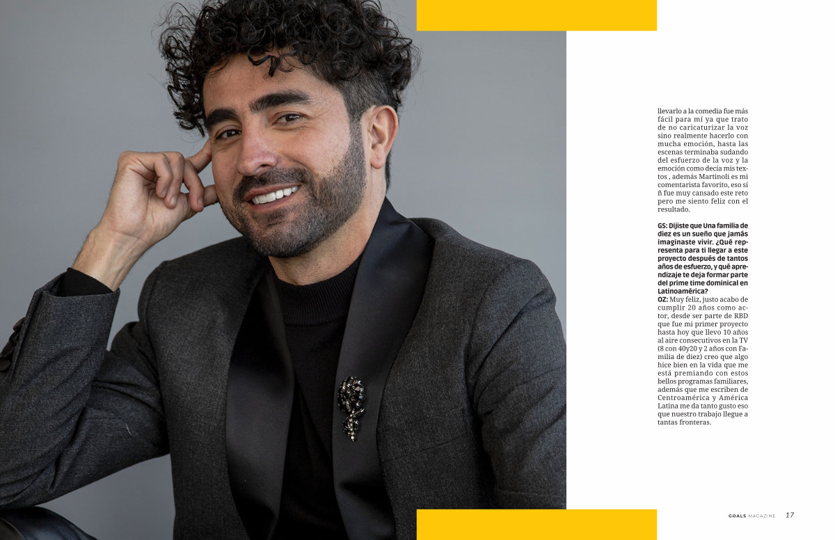 GS: Dijiste que Una familia de diez es un sueño que jamás imaginaste vivir. ¿ Qué representa para ti llegar a este proyecto después de tantos años de esfuerzo, y qué aprendizaje te deja formar parte del prime time dominical en Latinoamérica? OZ: Muy feliz, justo acabo de cumplir 20 años como actor, desde ser parte de RBD que fue mi primer proyecto hasta hoy que llevo 10 años al aire consecutivos en la TV( 8 con 40y20 y 2 años con Familia de diez) creo que algo hice bien en la vida que me está premiando con estos bellos programas familiares, además que me escriben de Centroamérica y América Latina me da tanto gusto eso que nuestro trabajo llegue a tantas fronteras.