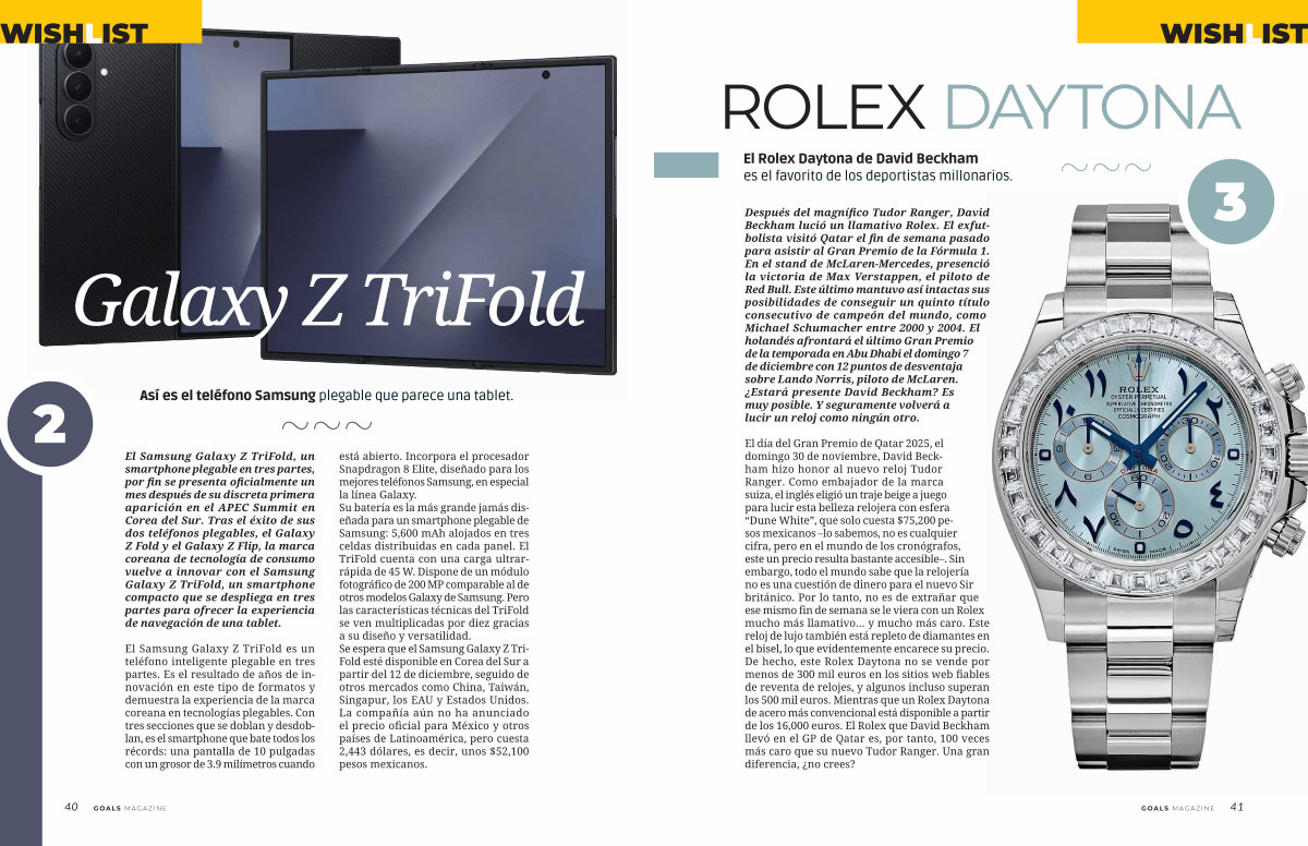 El Samsung Galaxy Z TriFold es un teléfono inteligente plegable en tres partes. Es el resultado de años de innovación en este tipo de formatos y demuestra la experiencia de la marca coreana en tecnologías plegables. Con tres secciones que se doblan y desdoblan, es el smartphone que bate todos los récords: una pantalla de 10 pulgadas con un grosor de 3.9 milímetros cuando está abierto. Incorpora el procesador Snapdragon 8 Elite, diseñado para los mejores teléfonos Samsung, en especial la línea Galaxy. Su batería es la más grande jamás diseñada para un smartphone plegable de Samsung: 5,600 mAh alojados en tres celdas distribuidas en cada panel. El TriFold cuenta con una carga ultrarrápida de 45 W. Dispone de un módulo fotográfico de 200 MP comparable al de otros modelos Galaxy de Samsung. Pero las características técnicas del TriFold se ven multiplicadas por diez gracias a su diseño y versatilidad. Se espera que el Samsung Galaxy Z Tri- Fold esté disponible en Corea del Sur a partir del 12 de diciembre, seguido de otros mercados como China, Taiwán, Singapur, los EAU y Estados Unidos. La compañía aún no ha anunciado el precio oficial para México y otros países de Latinoamérica, pero cuesta 2,443 dólares, es decir, unos $ 52,100 pesos mexicanos.
