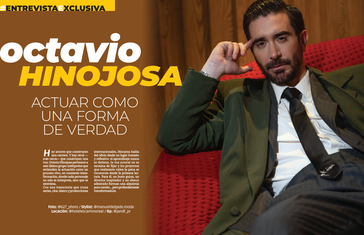 H ay actores que construyen una carrera. Y hay otros— más raros— que construyen una voz. Octavio Hinojosa pertenece a este último grupo: intérpretes que entienden la actuación como un proceso vivo, en constante trans- formación, donde cada personaje no solo se interpreta, sino que se atraviesa. Con una trayectoria que cruza series, cine, teatro y producciones internacionales, Hinojosa habla del oficio desde un lugar honesto y reflexivo: el aprendizaje nunca se detiene, la voz actoral no se termina de fijar y los proyectos que realmente valen la pena se reconocen desde la primera lec- tura. Para él, un buen guion, un director inspirador y un elenco admirado forman una alquimia poco común … pero profundamente transformadora.