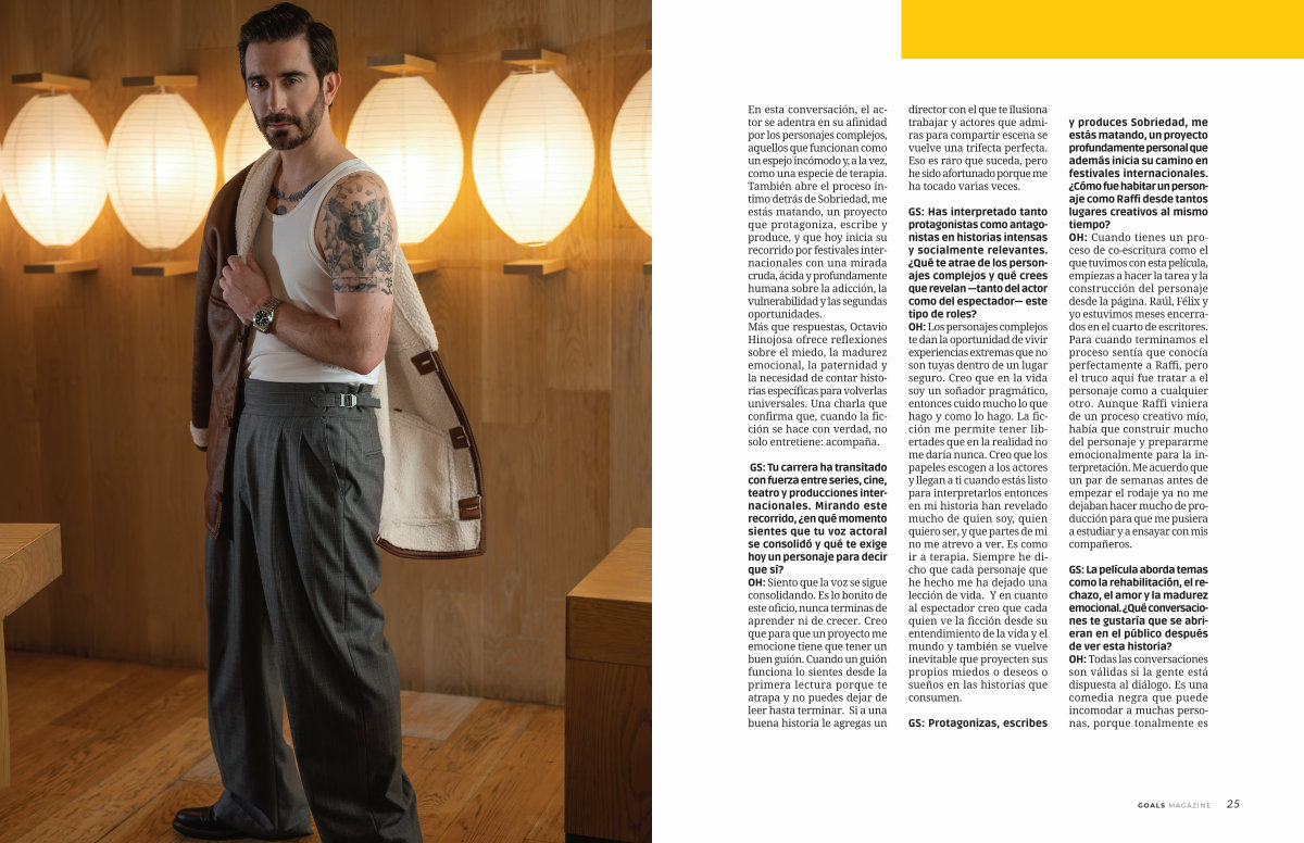 GS: Has interpretado tanto protagonistas como antagonistas en historias intensas y socialmente relevantes. ¿ Qué te atrae de los personajes complejos y qué crees que revelan— tanto del actor como del espectador— este tipo de roles? OH: Los personajes complejos te dan la oportunidad de vivir experiencias extremas que no son tuyas dentro de un lugar seguro. Creo que en la vida soy un soñador pragmático, entonces cuido mucho lo que hago y como lo hago. La ficción me permite tener libertades que en la realidad no me daría nunca. Creo que los papeles escogen a los actores y llegan a ti cuando estás listo para interpretarlos entonces en mi historia han revelado mucho de quien soy, quien quiero ser, y que partes de mi no me atrevo a ver. Es como ir a terapia. Siempre he dicho que cada personaje que he hecho me ha dejado una lección de vida. Y en cuanto al espectador creo que cada quien ve la ficción desde su entendimiento de la vida y el mundo y también se vuelve inevitable que proyecten sus propios miedos o deseos o sueños en las historias que consumen.