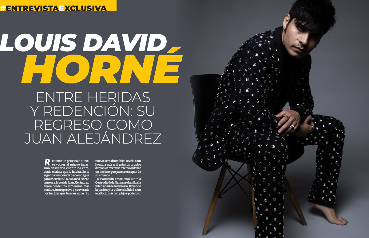 R etomar un personaje nunca es volver al mismo lugar, sino descubrir cuánto ha cam- biado el alma que lo habita. En la segunda temporada de Como agua para chocolate, Louis David Horne regresa a la piel de Juan Alejándrez, ahora desde una dimensión más madura, introspectiva y atravesada por heridas que buscan sanar. Su nuevo arco dramático revela a un hombre que enfrenta sus propios demonios mientras intenta ordenar un destino que parece escapar de sus manos. La evolución emocional junto a Gertrudis de la Garza profundiza la intensidad de la historia, llevando la pasión y la vulnerabilidad a un territorio más complejo y poderoso.