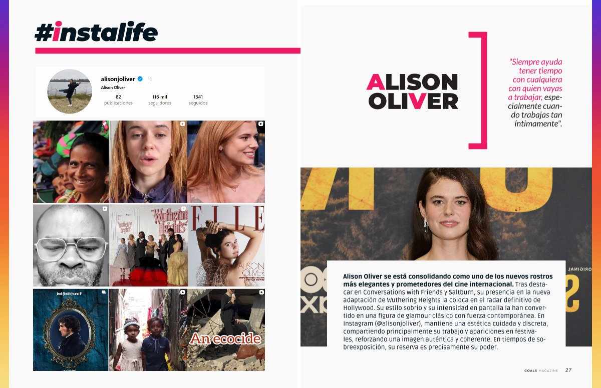 Alison Oliver se está consolidando como uno de los nuevos rostros más elegantes y prometedores del cine internacional. Tras destacar en Conversations with Friends y Saltburn, su presencia en la nueva adaptación de Wuthering Heights la coloca en el radar definitivo de Hollywood. Su estilo sobrio y su intensidad en pantalla la han convertido en una figura de glamour clásico con fuerza contemporánea. En Instagram(@ alisonjoliver), mantiene una estética cuidada y discreta, compartiendo principalmente su trabajo y apariciones en festivales, reforzando una imagen auténtica y coherente. En tiempos de sobreexposición, su reserva es precisamente su poder.