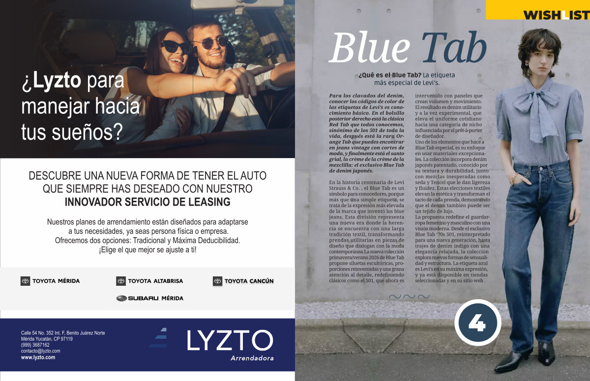 En la historia centenaria de Levi Strauss & Co., el Blue Tab es un símbolo para conocedores, porque más que una simple etiqueta, se trata de la expresión más elevada de la marca que inventó los blue jeans. Esta división representa una nueva era donde la herencia se encuentra con una larga tradición textil, transformando prendas utilitarias en piezas de diseño que dialogan con la moda contemporánea. La nueva colección primavera / verano 2026 de Blue Tab propone siluetas escultóricas, proporciones reinventadas y una grana atención al detalle, redefiniendo clásicos como el 501, que ahora es intervenido con paneles que crean volumen y movimiento. El resultado es denim utilitario y a la vez experimental, que eleva el uniforme cotidiano hacia una categoría de nicho influenciada por el prêt-à-porter de diseñador. Uno de los elementos que hace a Blue Tab especial, es su enfoque en usar materiales excepcionales. La colección incorpora denim japonés patentado, conocido por su textura y durabilidad, junto con mezclas inesperadas como seda y Tencel que le dan ligereza y fluidez. Estas elecciones textiles elevan la estética y transforman el tacto de cada prenda, demostrando que el denim también puede ser un tejido de lujo. La propuesta redefine el guardarropa femenino y masculino con una visión moderna. Desde el exclusivo Blue Tab‘ 70s 501, reinterpretado para una nueva generación, hasta trajes de denim índigo con una elegancia relajada, la colección explora nuevas formas de sensualidad y estructura. La etiqueta azul es Levi’ s en su máxima expresión, y ya está disponible en tiendas seleccionadas y en su sitio web.