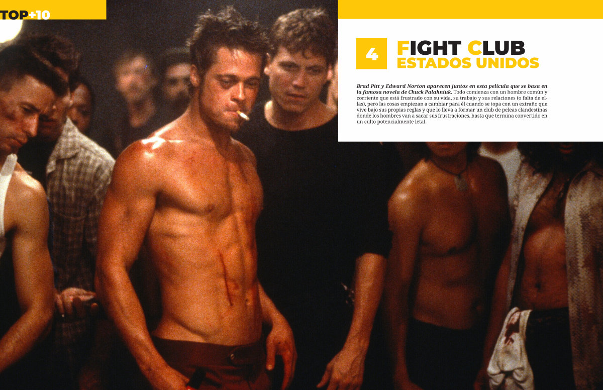 Brad Pitt y Edward Norton aparecen juntos en esta película que se basa en la famosa novela de Chuck Palahniuk. Todo comienza con un hombre común y corriente que está frustrado con su vida, su trabajo y sus relaciones( o falta de ellas), pero las cosas empiezan a cambiar para él cuando se topa con un extraño que vive bajo sus propias reglas y que lo lleva a formar un club de peleas clandestinas donde los hombres van a sacar sus frustraciones, hasta que termina convertido en un culto potencialmente letal.