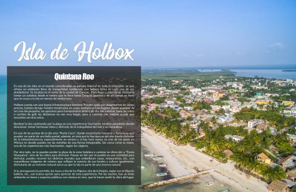 Es una de las islas en el mundo consideradas un paraíso tropical en toda la extensión , ya que ofrece un ambiente lleno de tranquilidad combinado con belleza única en cada uno de sus alrededores . Se localiza en el norte de la ciudad de Cancún .. Para llegar a esta isla es necesario tomar un autobús desde el centro que te lleve hasta Chiquilá ( pueblo ) y de ahí tomas un ferry que te cruza a la isla en menos de media hora .