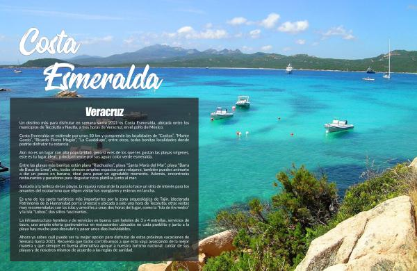 Un destino más para disfrutar en semana santa 2021 es Costa Esmeralda , ubicada entre los municipios de Tecolutla y Nautla , a tres horas de Veracruz , en el golfo de México .