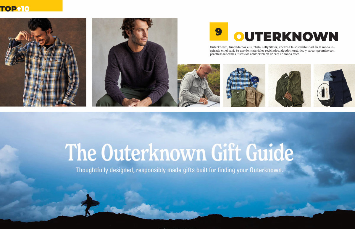 Outerknown, fundada por el surfista Kelly Slater, encarna la sostenibilidad en la moda inspirada en el surf. Su uso de materiales reciclados, algodón orgánico y su compromiso con prácticas laborales justas los convierten en líderes en moda ética.