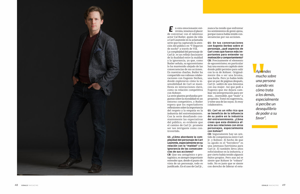 GS: ¿ Cómo abordaste la complejidad del personaje de Carl Leammle, especialmente en su relación con la“ maldad” y la ignorancia de las consecuencias de sus acciones? CB: Que sea antagónico o protagónico, es siempre importante entender que, desde el punto de vista de un personaje, todo es justificado. En el caso de Carl Jr., nunca ha tenido que enfrentar los sentimientos de gente ajena, porque nunca había tenido consecuencias por sus acciones.