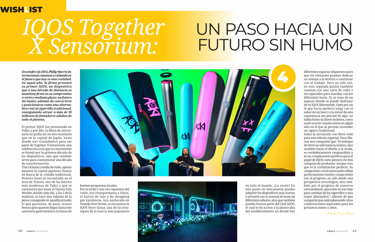 en todo el mundo. ¿ La razón? En este punto no únicamente puedes adquirir los dispositivos más nuevos y armarte con tu arsenal de heets de diferentes sabores, sino que también puedes formar parte del Club IQOS, el cual te da acceso a la planta alta del establecimiento en donde hay diferentes espacios dispuestos para que los visitantes puedan dedicar un tiempo a la lectura o continuar con el trabajo. Pero no sólo eso, en esta segunda planta también cuentan con una carta de cafés y tés especiales para maridar con los diferentes heets. Sí, se trata de un espacio donde se puede disfrutar de tu IQOS libremente. Opté por un té que hacía perfecto juego con el sabor de mi heet y a la mitad de esta experiencia me percaté de algo: no había humo ni olores molestos, como suele ocurrir cuando entras en algún sitio en el que se permite encender un cigarro tradicional. Sobre la asociación con Steve Aoki para esta edición especial, Yann Marois nos compartió que“ el enfoque de Steve no solo hacia la música, sino también hacia el diseño y la moda, es verdaderamente vanguardista y es un complemento perfecto para el papel de IQOS como pionero en esta categoría de productos. Así que creo que es la combinación perfecta. Su compromiso con la innovación refleja perfectamente nuestro compromiso con el progreso, no sólo desde una perspectiva tecnológica, sino también por el progreso de nuestros consumidores, que están en ese viaje para cambiar de los cigarrillos a una mejor alternativa”; además de que compartió que están planeando otras colaboraciones especiales para los próximos meses y años.