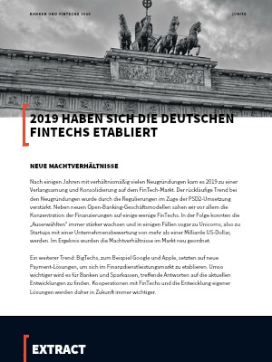 Nach einigen Jahren mit verhältnismäßig vielen Neugründungen kam es 2019 zu einer Verlangsamung und Konsolidierung auf dem FinTech-Markt. Der rückläufige Trend bei den Neugründungen wurde durch die Regulierungen im Zuge der PSD2-Umsetzung verstärkt. Neben neuen Open-Banking-Geschäftsmodellen sahen wir vor allem die Konzentration der Finanzierungen auf einige wenige FinTechs. In der Folge konnten die „Auserwählten“ immer stärker wachsen und in einigen Fällen sogar zu Unicorns, also zu Startups mit einer Unternehmensbewertung von mehr als einer Milliarde US-Dollar, werden. Im Ergebnis wurden die Machtverhältnisse im Markt neu geordnet.